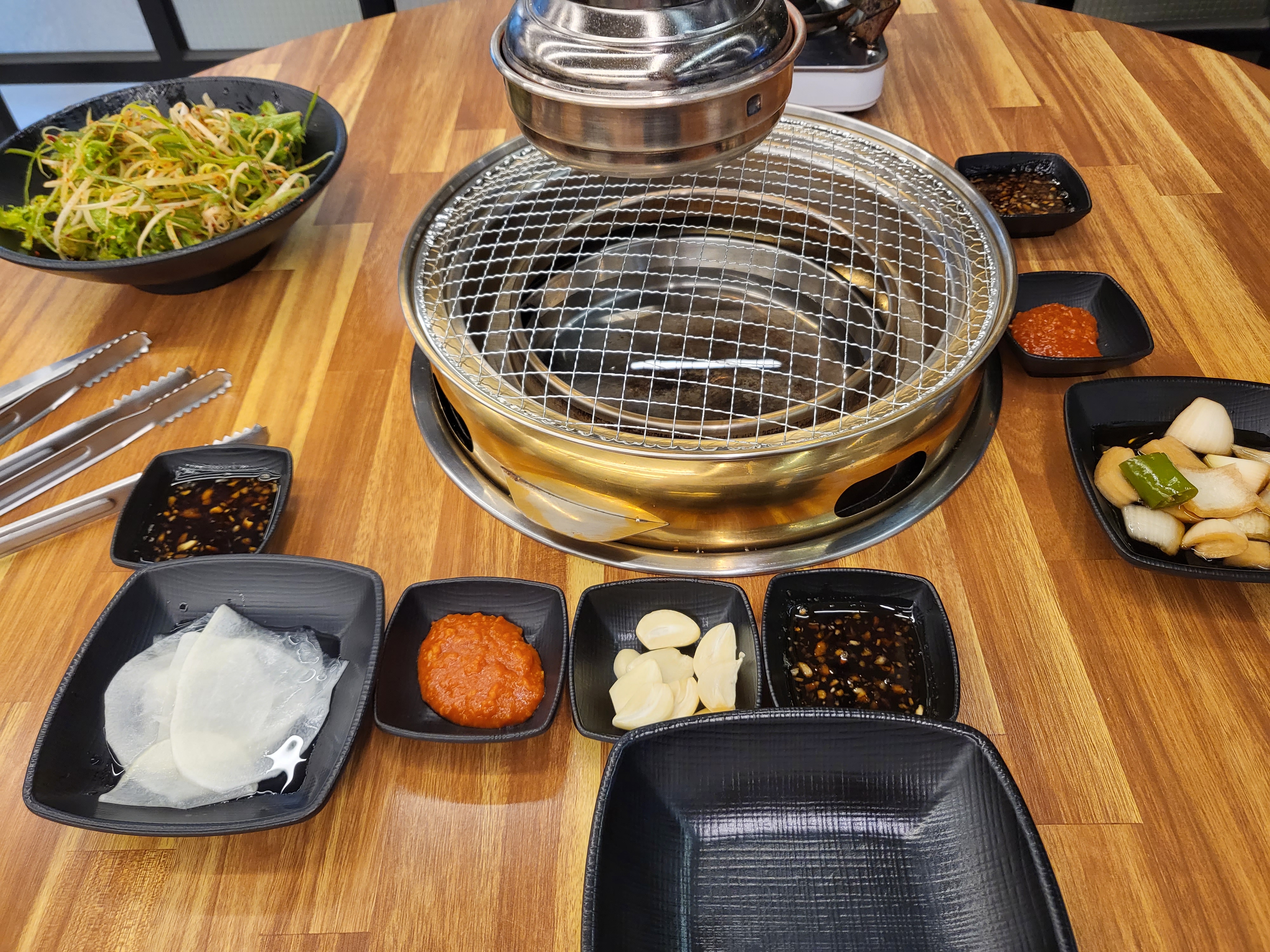 기본 반찬 입니다. 쌈무, 마늘, 갈비 소스 등이 있었고, 갈비 소스는 너무 달지 않아서 좋았던 것 같고, 파묻힘은 간이 너무 쌔지 않아서 맛이 있었습니다. 그리고 기본 반찬은 셀프 코너가 있기 때문에 필요로 하시면 가셔서 상추나 김치 등을 가지고 오시면 됩니다.