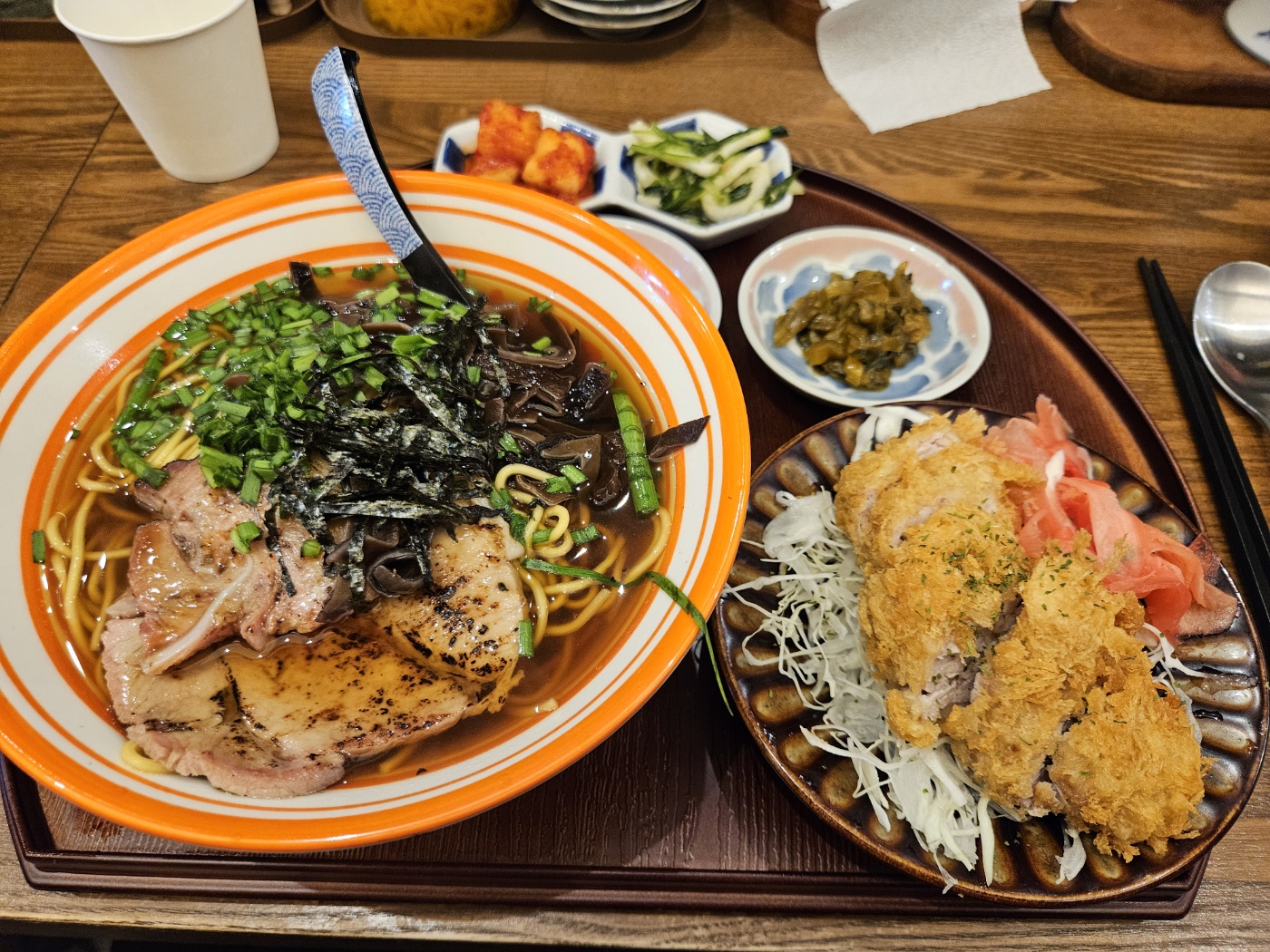 저는 라멘과 카츠 모두를 맛보고 싶어, 샷뽀로라멘+mini안심카츠 를 주문했습니다. 삿포로라멘과 안심카츠 비주얼이 너무 맛있게 보입니다. 삿포로라멘에는 고기도 많이 들어가 있고, 안심카츠는 미니라서 먼가 작은 듯싶었지만, 라멘과 같이 먹으니 배가 불렀습니다. 그리고 삿포로라멘은 밥은 공짜로 주니, 필요하실 때 직원분에게 말씀하시면 됩니다.